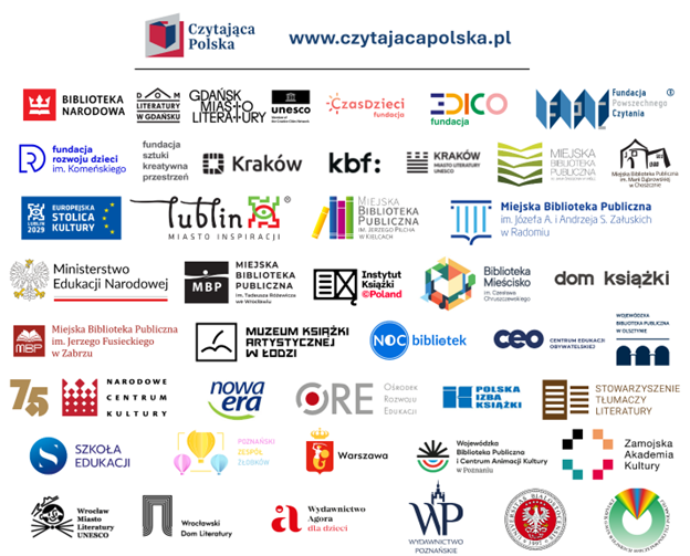 Fundacje i stowarzyszenia: Fundacja Powszechnego Czytania, Fundacja CzasDzieci, Fundacja Edico, Centrum Edukacji Obywatelskiej, Festiwal Stolica Języka Polskiego, Szkoła Edukacji UW i PAFW, Polska Izba Książki, Stowarzyszenie Tłumaczy Literatury; Fundacja Rozwoju Dzieci im Komeńskiego, Fundacja Dom Książki w Poznaniu